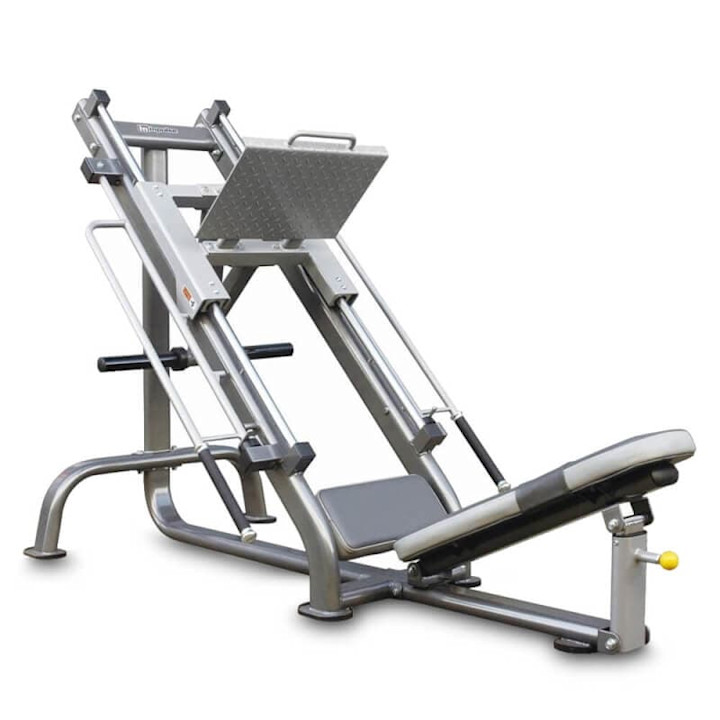 Den mest utbredte typen på treningsstudio. Du ligger i 45 graders vinkel og skyver platen diagonalt over deg. Tillater tyngre belastning og gir et større bevegelsesutslag. Krever mer plass.