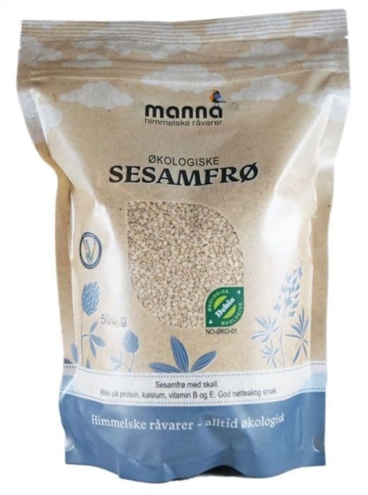 Sesamfrø fra Manna kommer med skall. Frøene er rike på protein, kalsium, vitamin B og E, og har en god og nøtteaktig smak. Manna Sesamfrø anbefales på grunn av sitt høye innhold av kostfiber og protein, samtidig som at de er rike på kalsium, Vitamin B og E, og en god kilde til umettet fett. Samtidig er sesamfrøene smakfulle og dekorative. De kan brukes som ingrediens i bakst, i salater, frokostblandninger og wokretter. De kan også brukes som topping på smoothie-bawl.