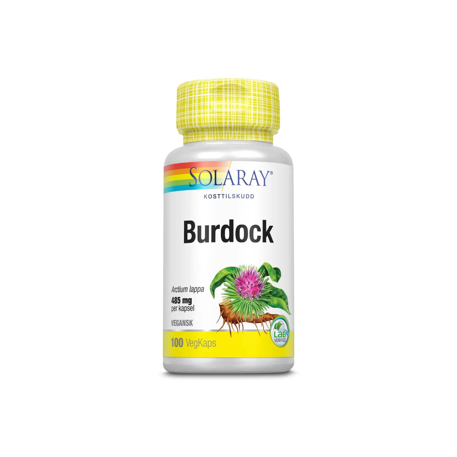 Produsenten Solaray er kjent for å levere kosttilskudd med naturlige ingredienser og høy kvalitet. Solaray Burdock er et vegansk kosttilskudd med et høyt innhold av storborre-rot. Hver kapsel inneholder 485 milligram med storborre. Produktet er utviklet for å virke mot kviser, lett eksem, mild psoriasis og svake leddplager. Helt fra middelalderen har storborre-rot blitt brukt som diverse hudplager og leddplager, og Solaray er en nyere form for medisinsk helsekost. Kapselene med storborre-rot inneholder inulin, slimstoffer, garvestoff og flyktige oljer. Produktet har gått gjennom en omfattende kvalitetskontroll og er Green Screened-merket, noe som betyr at urten tilfredsstiller standardene for organisk dyrking. Solaray anbefaler en daglig dose på 2 kapsler som kan tas 2-3 ganger om dagen, sammen med mat eller vann.