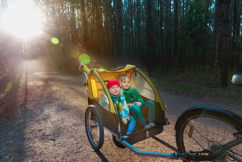Med en vogn til å hekte fast bak sykkelen, kan du trygt frakta barna fra A til B. Dette kan til og med gå raskere enn å kjøre bil, siden du slipper å stå i kø i rush-trafikken.
